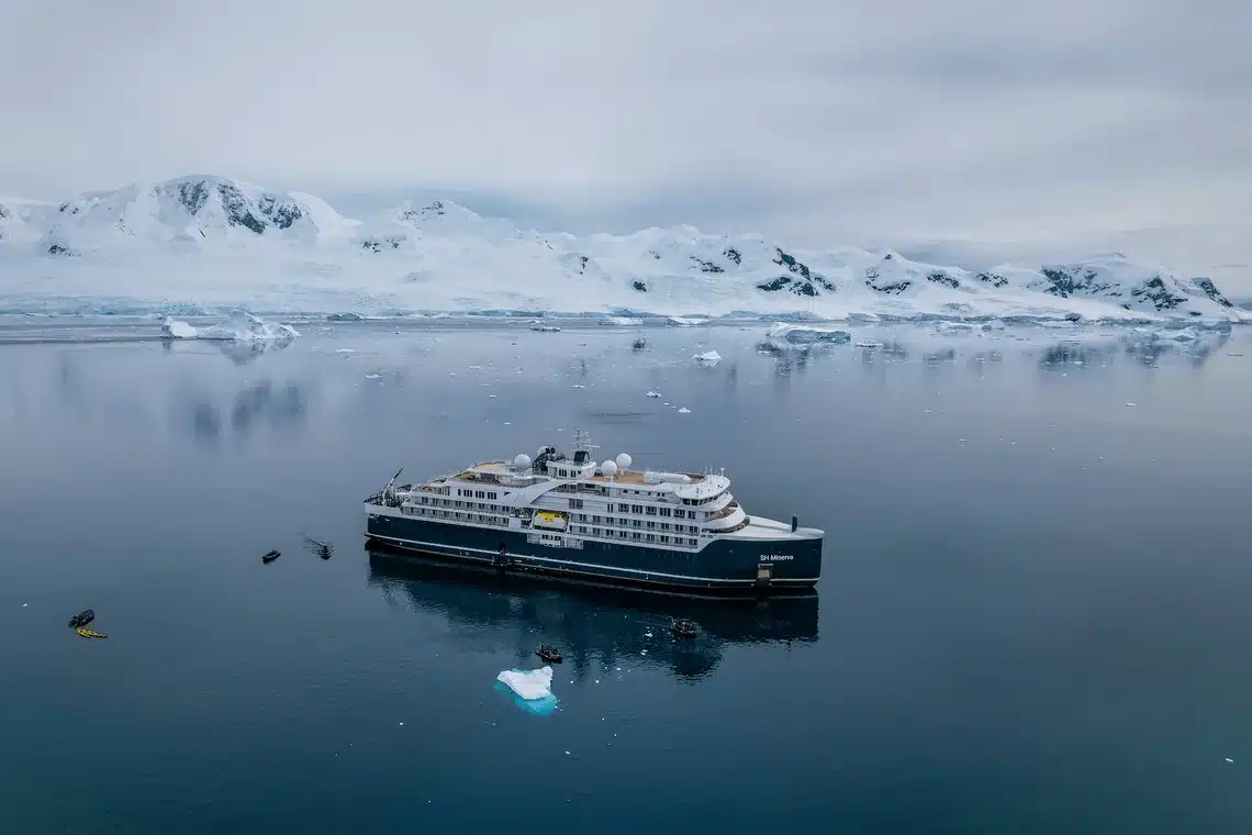 As expedições diárias em botes Zodiac aproximam os viajantes de icebergs, focas e baleias, enquanto a tripulação garante uma jornada segura e inesquecível.